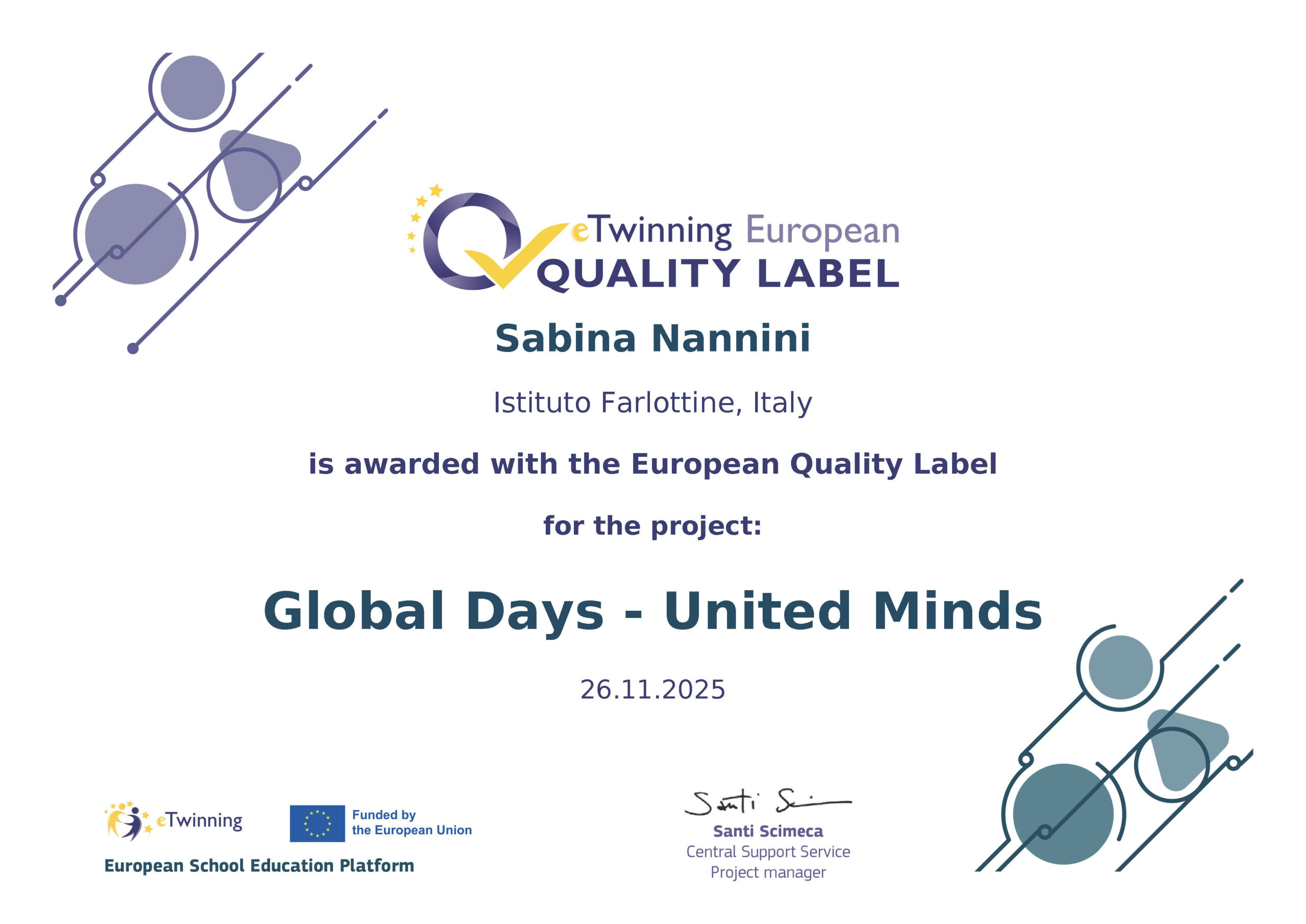 anno 2024-25: Partendo dalla celebrazione delle Giornate Mondiali, il progetto ha inteso avvicinare i bambini di diversi Paesi nell'esplorazione di un tema comune. Si è realizzata una rete globale di apprendimento innovativo, basato sulla peer education (l'educazione fra pari), che ha permesso ad ognuno di lasciare il proprio personale segno, in un mosaico colorato di idee ed emozioni.
