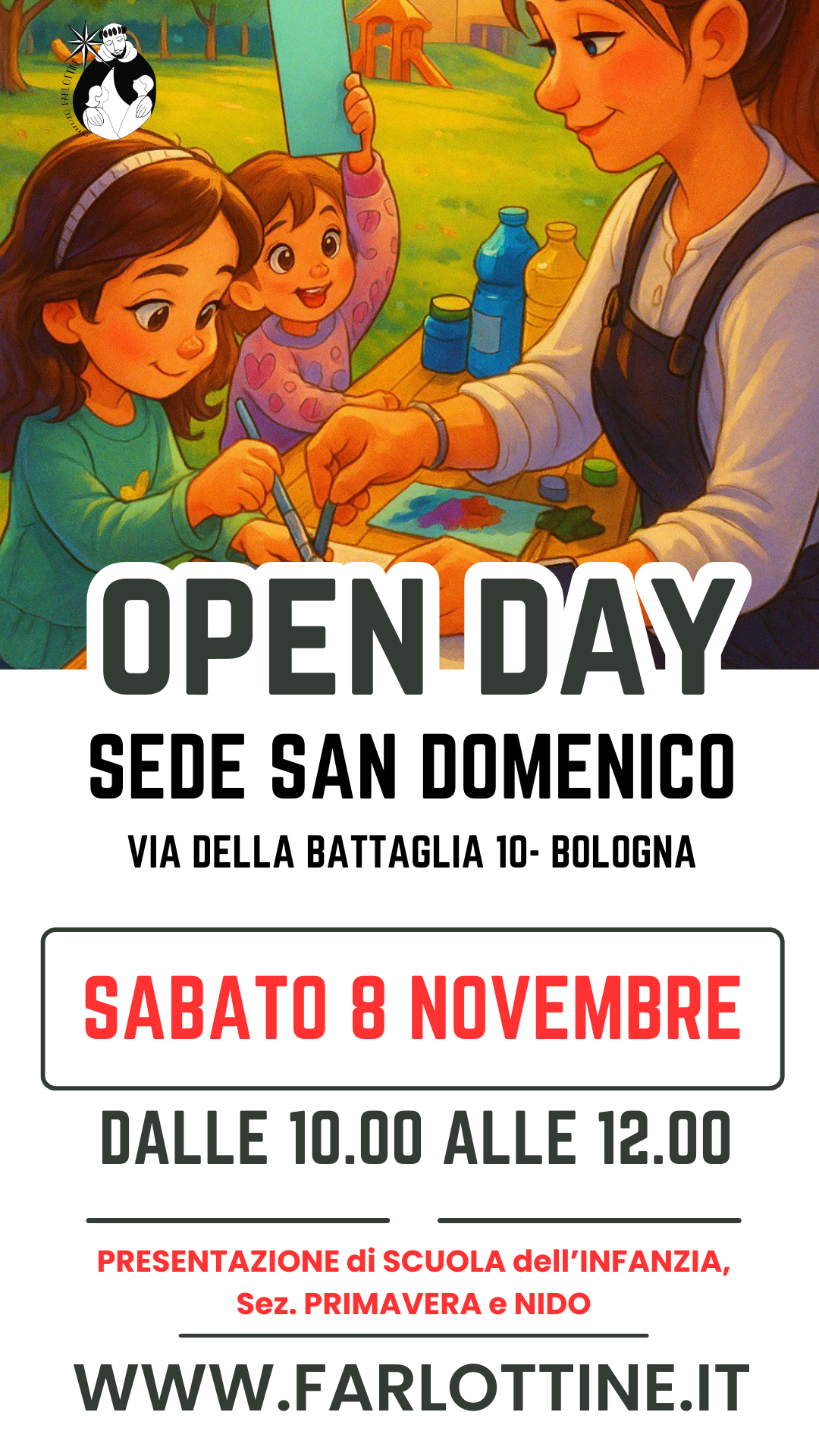 Per il Nido, la Sezione Primavera e la Scuola dell'Infanzia potete prenotare l'appuntamento compilando il modulo Google, oppure per particolari necessità è sempre possibile scrivere al Coordinatore Didattico, Rossella Ambrosino rossella.ambrosino@farlottine.it.