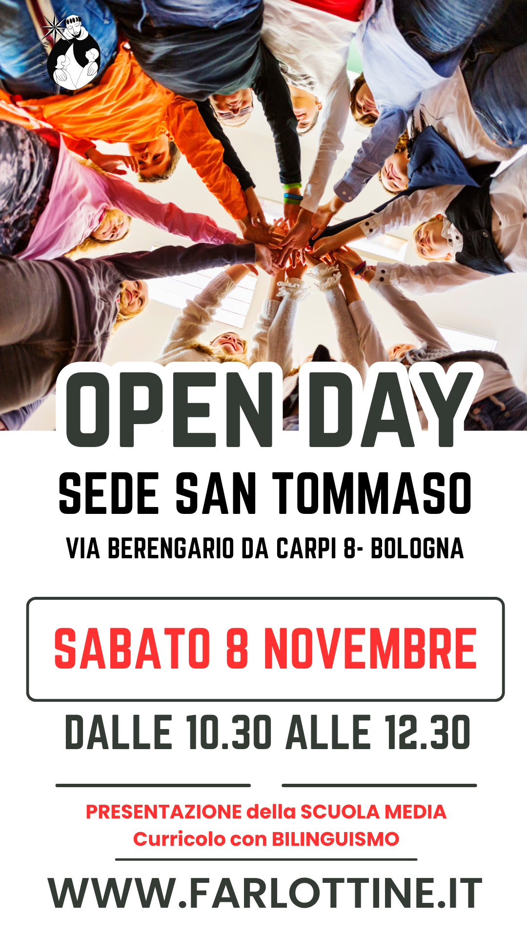 La scuola Media San Tommaso riapre le porte a settembre, potete prenotare il vostro appuntamento compilando il modulo Google, oppure, per necessità particolari, è sempre possibile scrivere alla Responsabile della Sede, Sabina Berselli sabina.berselli@farlottine.it.